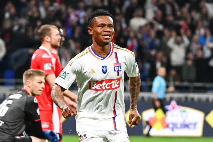 Gift Orban celebrates scoring for Lyon | X/ @CoupedeFrance