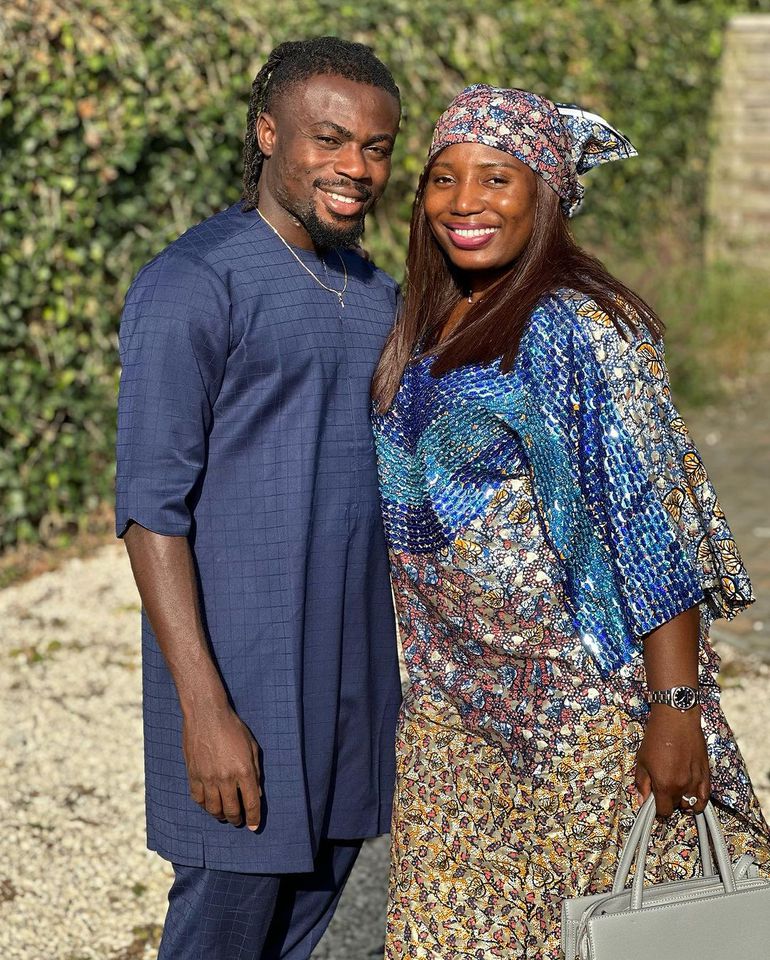 Super Eagles star Moses Simon shows off Nigerian attire with wife in France