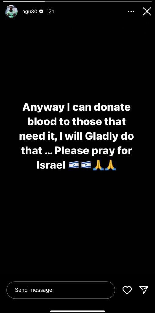The midfielder, via an Instagram Story, called for the masses to pray for Israel and says he is making himself available for blood donation to those who are currently injured and in need.