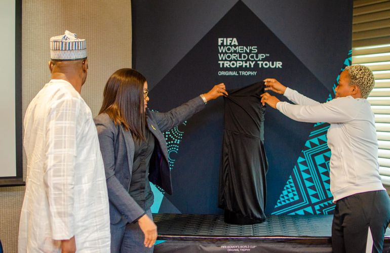 Executive Committee member of the Nigeria Football Federation, NFF, Aisha Falode unveiled the FIFA Women's World Cup trophy in Nigeria.