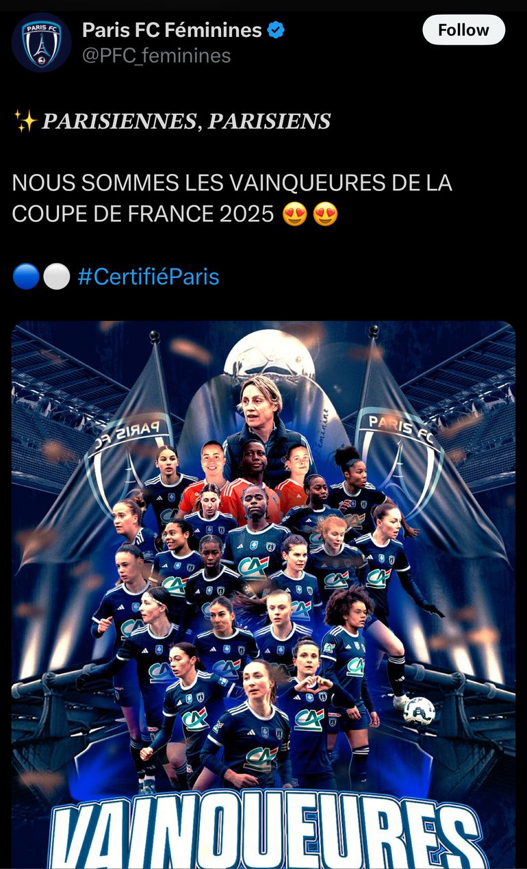 This marks the second time in the tournament's history that Paris FC has lifted the trophy.