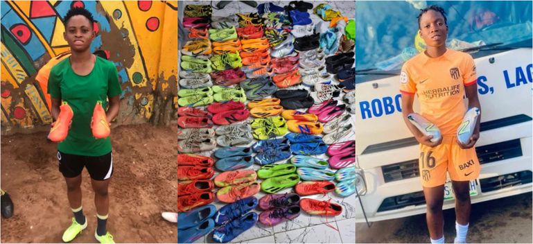 “So i collected these football gears in 1 year from my past and present club teammates to support talented young lads in my community and my grassroot team who can't afford/ struggle to get gears to exhibit their potential.”