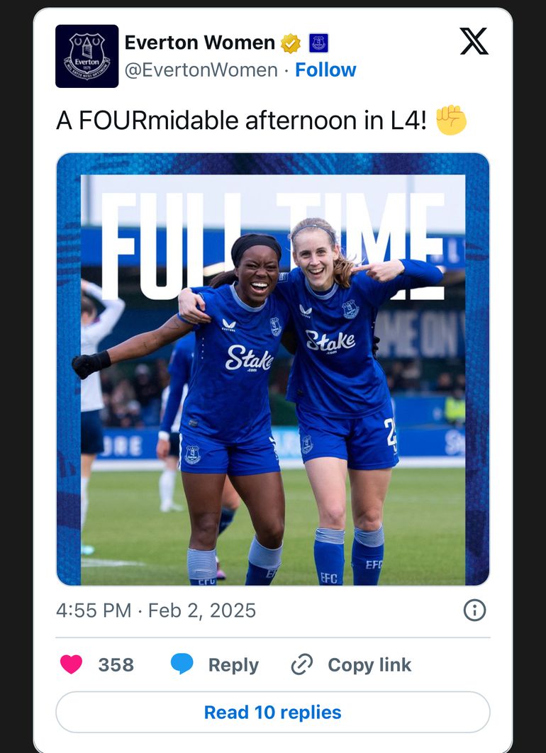 Hanoka Hayashi then extended Everton's lead in the 57th minute, before Gago sealed the win with her second goal of the match, courtesy of another brilliant assist from Payne.