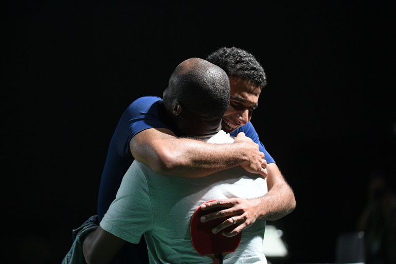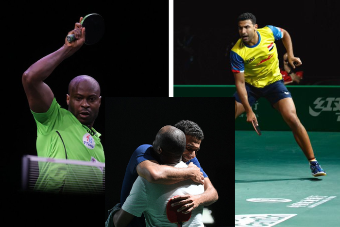 Assar called Quadri Aruna to celebrate with him after defeating Croatian Tomislav Pucar in the round of 16 of the World Table Tennis Championship.