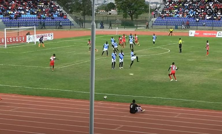 Muchiri goes as if to whip the ball in, before he suddenly passes the ball onto the path of Makwata which catches Shabana players completely off guard