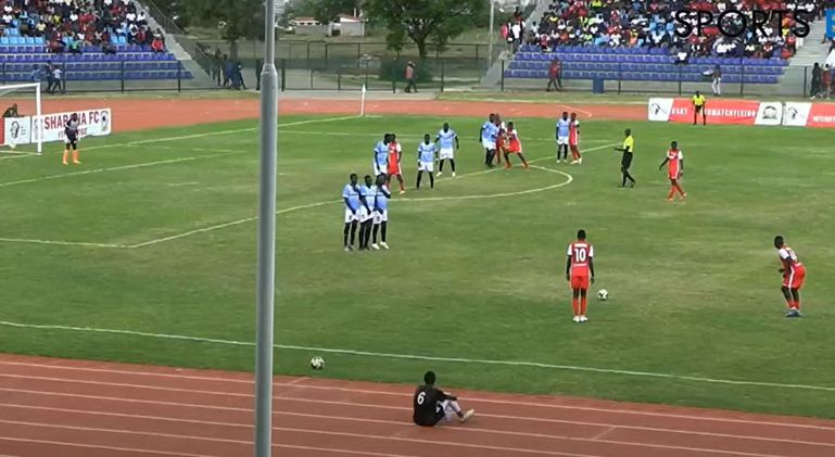 Both Boniface Muchiri and Makwata positioned themselves to take the freekick from deep, before Makwata proceeds to make a decoy run.