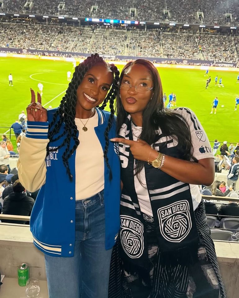 During the MLS match between San Diego FC and St. Louis, fans were spotted recording Tems and Hollywood heavyweight Issa Rae.