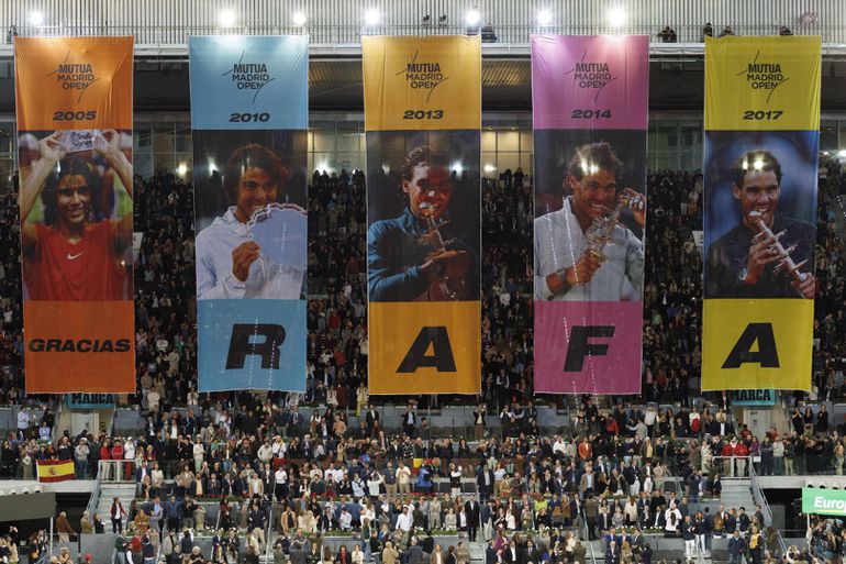 Fans waited for the five-time winner’s post-match speech, and five banners showing Nadal’s wins in Madrid were unfurled at the match’s conclusion.