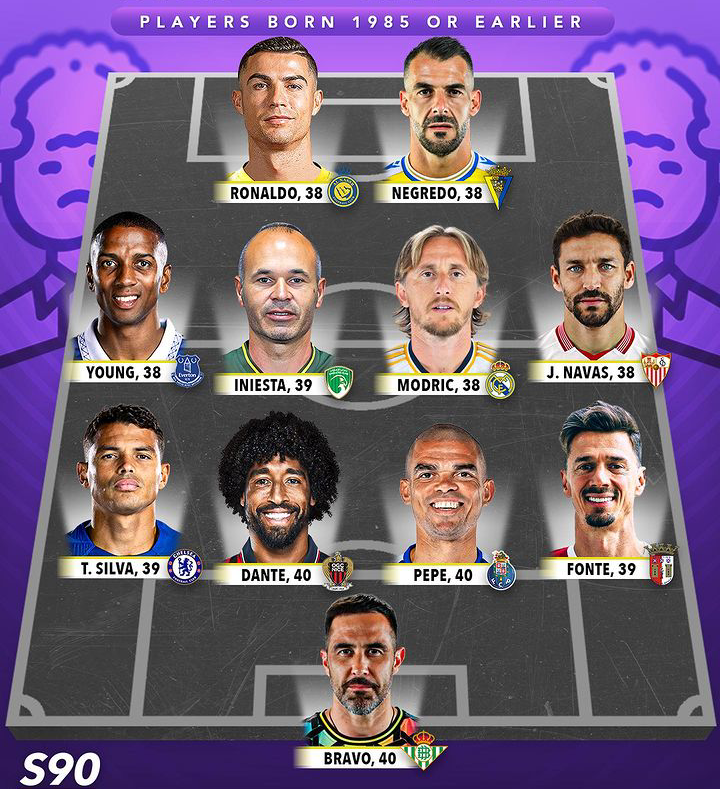 Score90's latest analysis highlights the extraordinary talents of the best XI footballers aged 38 and above in the 2023/2024 season.