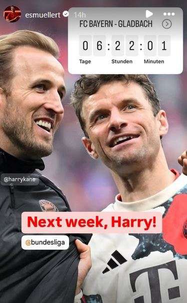 Muller seems confident about the outcome, posting on Instagram: "Next week, Harry!" in anticipation of celebrating with Kane.