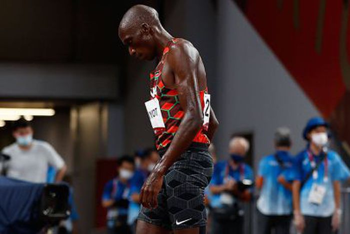 Timothy Cheruiyot reacts after fizzling out at Kip Keino Classic