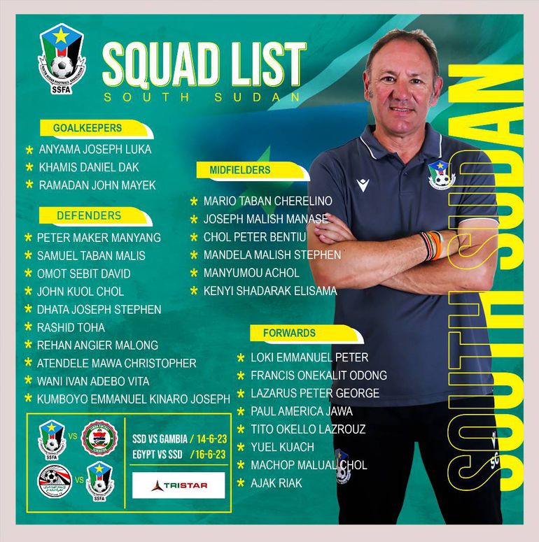 Five Ugandan-based footballers have been called up to the SOuth SUdan team for the upcoming 2023 AFCON match day five qualifiers.