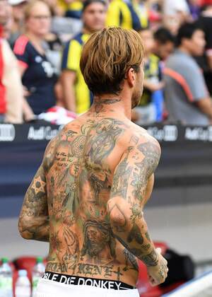 His tattoos are diverse, ranging from cultural symbols to personal tributes, echoing his vibrant and unconventional career path, both in football and in his personal life.