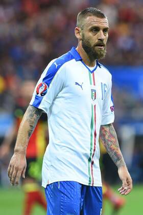 De Rossi's tattoos capture his fierce spirit on the field and his softer side of it. His right calf sports a unique design: a triangular warning sign with a tackle taking place, epitomising his aggressive style of play.