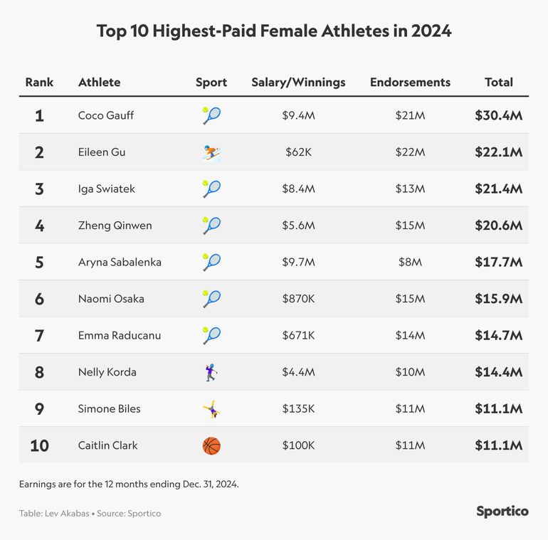 Top 10 highest-earning female athletes (2025): Coco Gauff tops list with $30,000,000 as Sha'Carri Richardson is unranked