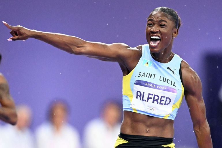 The 23-year-old became Saint Lucia's first Olympic champion in history after defeating pre-championship favorite Sha'Carri Richardson in the 100m final by blazing to the finish line in a new personal best of 10.72s.