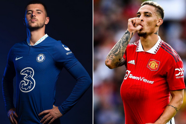 Mason Mount of Chelsea (L) and Antony of Manchester United (R)