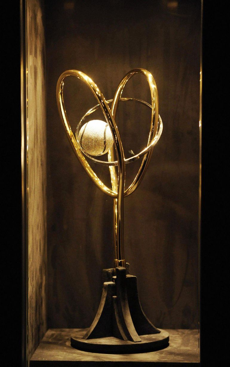 A new version of the trophy was introduced in 2008, featuring a golden racquet and ball, embellished with diamonds.
