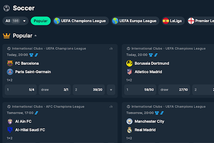 Football fans will find themselves at home at Mega Dice. The platform offers hundreds of matches daily, encompassing major leagues like the English Premier League and Bundesliga, as well as continental showdowns like the UEFA Champions League.
