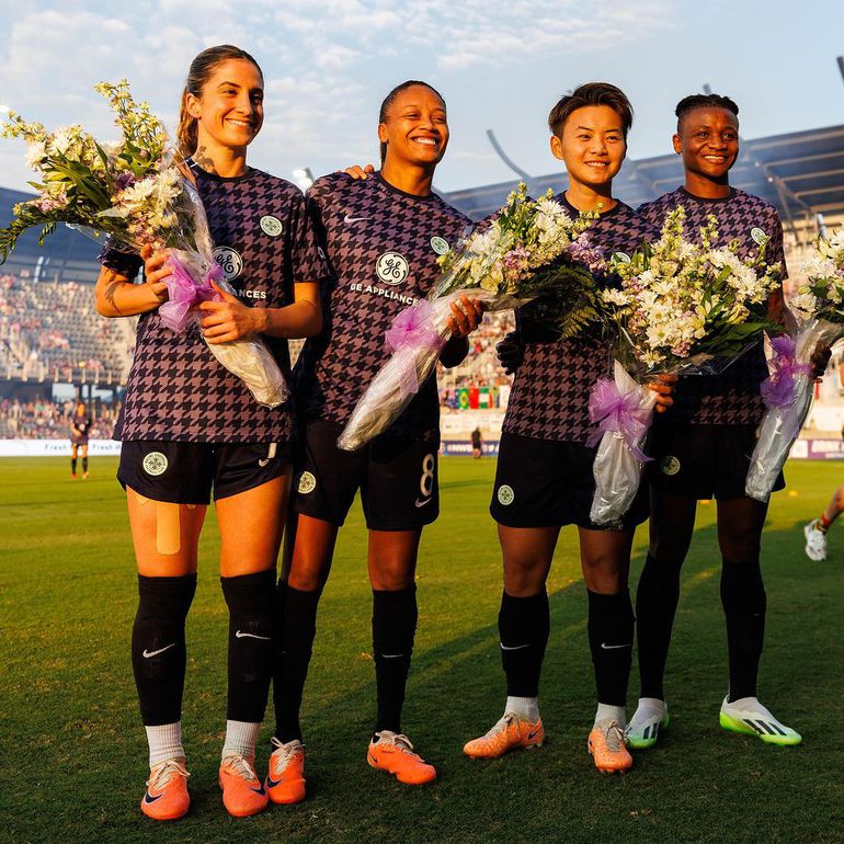 All four players were presented with flowers from Racing Louisville and cheered by the crowd.