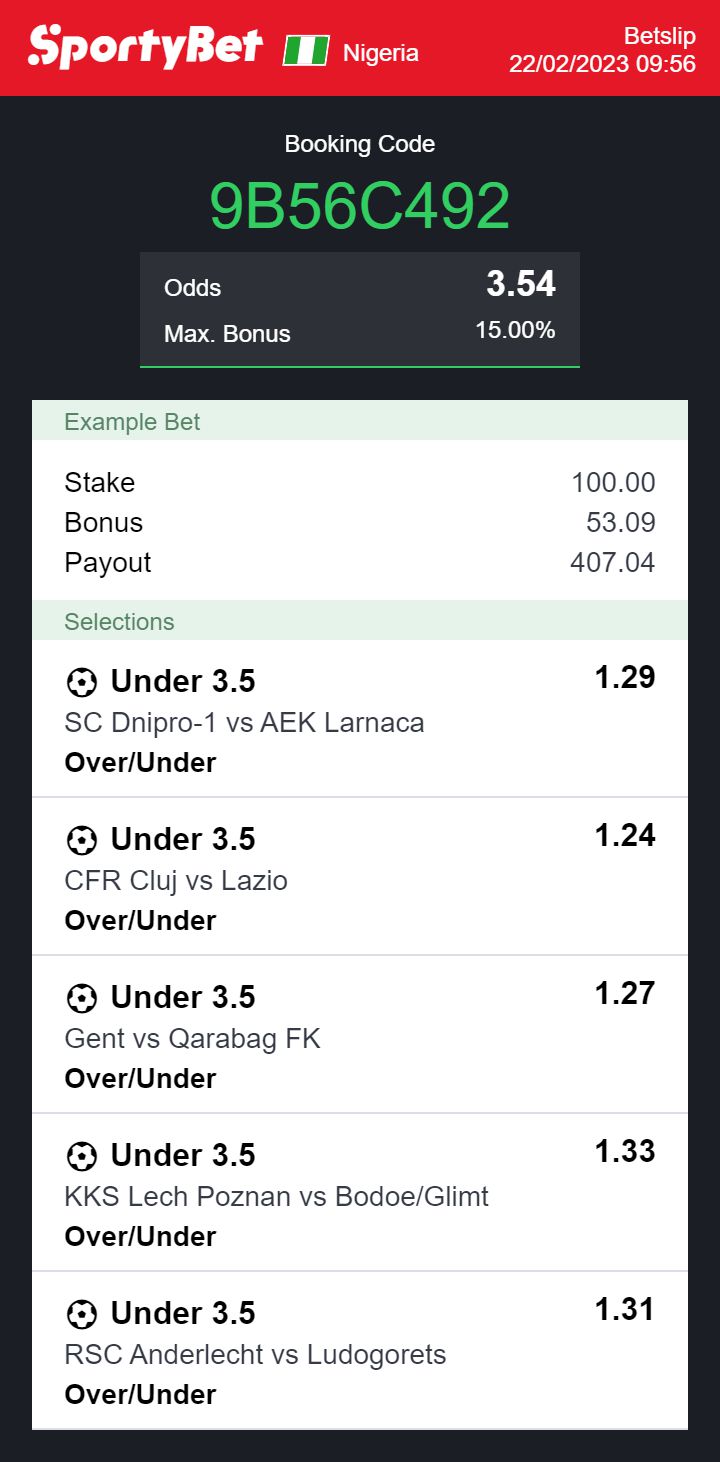 Total odds on Sportybet: 3.54 odds
