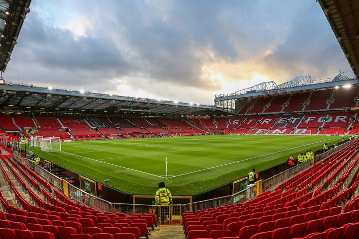 General View of the Stretford End inside Old Trafford stadium during the Premier League match between Manchester United and Wolverhampton Wanderers at Old Trafford on January 3, 2022.