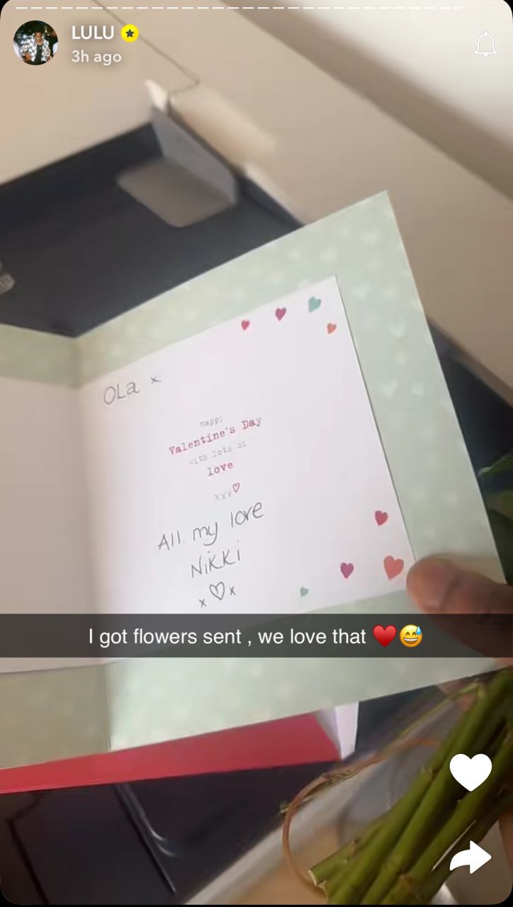 Taking to Snapchat, Aina shared a bouquet of red roses alongside a romantic note from someone named “Nikki”.