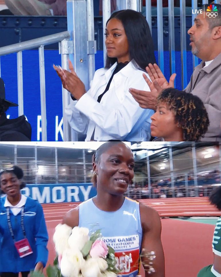 However, during the women's 60m final, the world's fastest woman will be captured applauding Julien Alfred after the former standout college athlete dominated the field to cross the finish line in a new world lead of 6.99s.