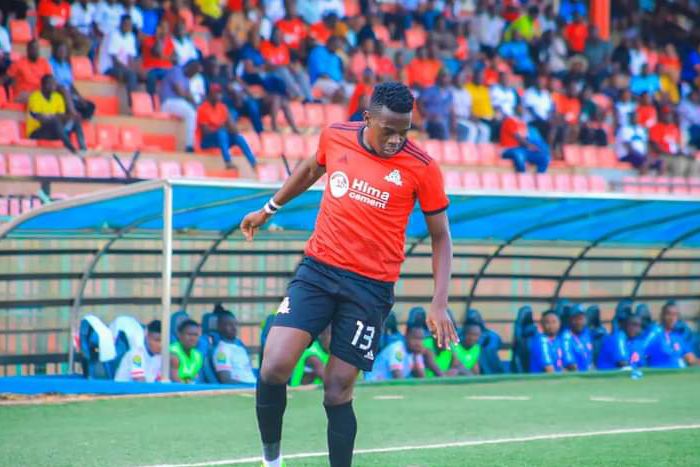 Shariph Kimbowa had a chance to score for the Purple Sharks but failed to beat the goalkeeper Alfred Mudekereza.