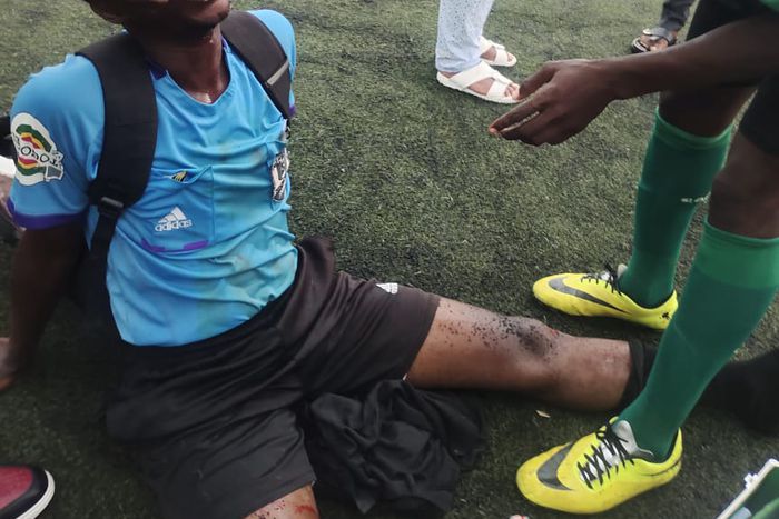 Agitated, angry and furious, the Motemba beat the official as he ran across the pitch in an attempt to escape.