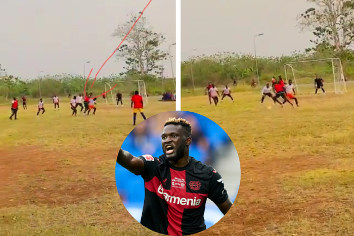 Bayer Leverkusen's top striker Victor Boniface, still has the street football flair after showing his amazing dribbling skills during a local match in Nigeria.
