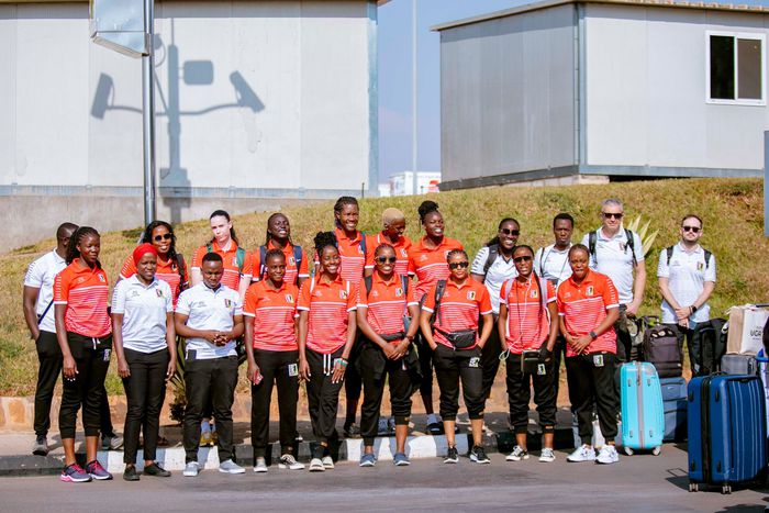 Uganda Gazelles pause for a photo upon arrival in Kigali, Rwanda, for the FIBA Women's Afrobasket 2023 /COURTESY PICTURE