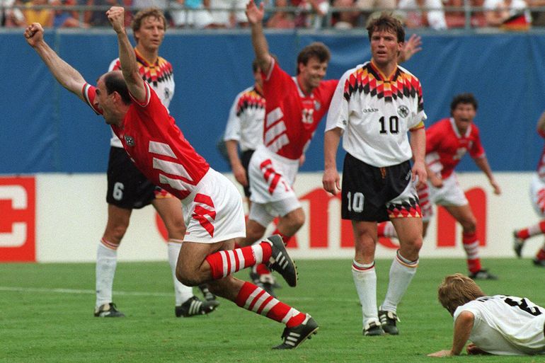 Hristo Stoichkov inspired Bulgaria to a surprise 2-1 win over Germany in 1994
