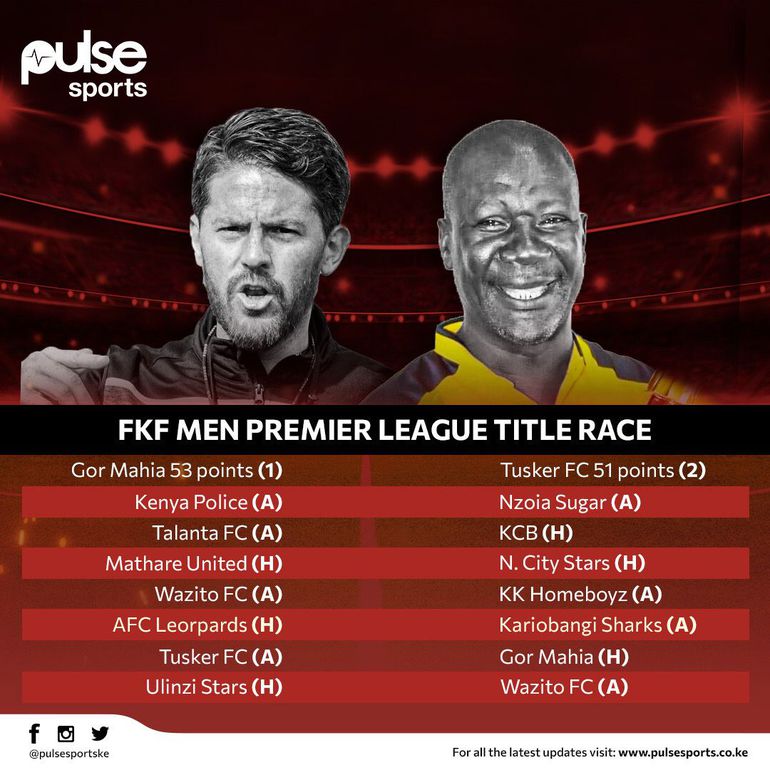 Tusker FC and Gor Mahia are set for a tough run-in that will see them come up against tough opposition as both bid to claim the 2022-2023 Football Kenya Federation Premier League (FKFPL) title.