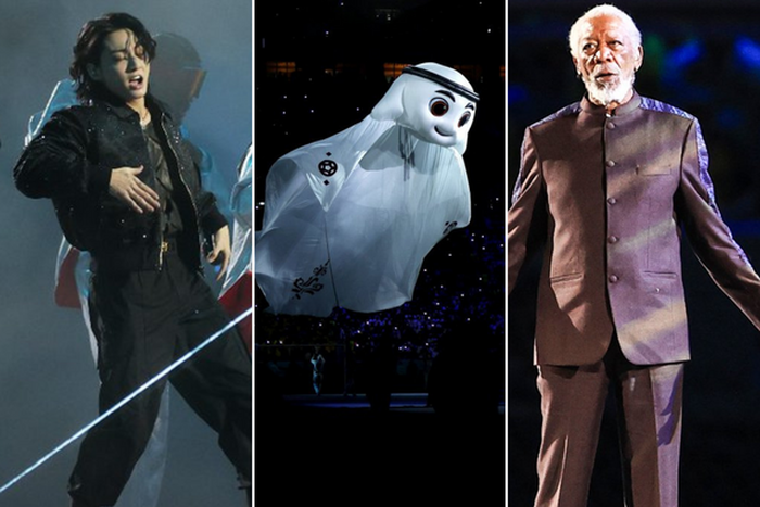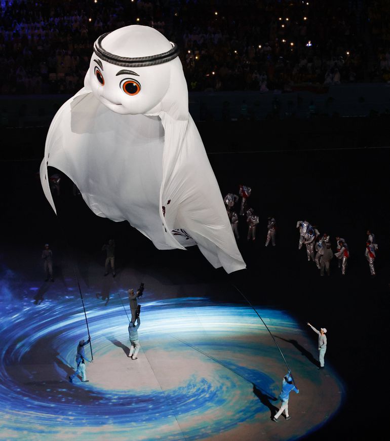 Who is La'eeb? The official mascot for the 2022 FIFA World Cup in Qatar was present. His name is La'eeb and he was unleashed after everyone had performed.
