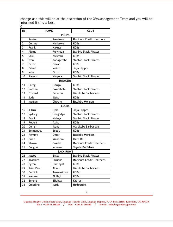 “We are delighted to start preparations for the Uganda Men’s XVs National Team games for 2023,” a document from the Uganda Rugby Union revealed.