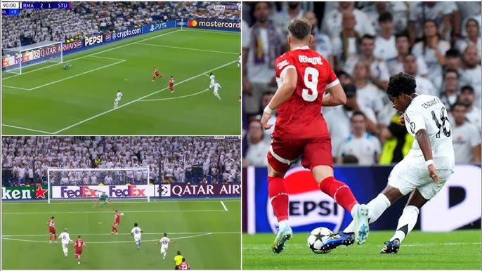 For the third goal, Endrick raced clear, and with Mbappe and Endrick on either side,decided to shoot from distance.