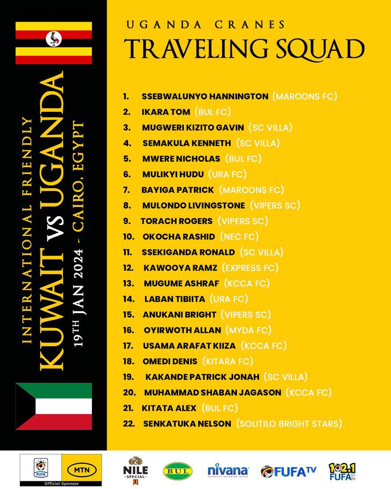 Meanwhile, SC Villa attacker Umar Lutalo, who had been included in the initial squad, has been excluded over unconfirmed reasons.