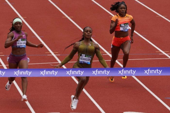 Richardson ran her first 100m race this year and claimed a win after clocking a season’s best 10.83 seconds at the Eugene Diamond League with Saint Lucian Alfred Julien in second place in 10.93 while Britain’s Dina Asher-Smith completed the podium in 10.98.