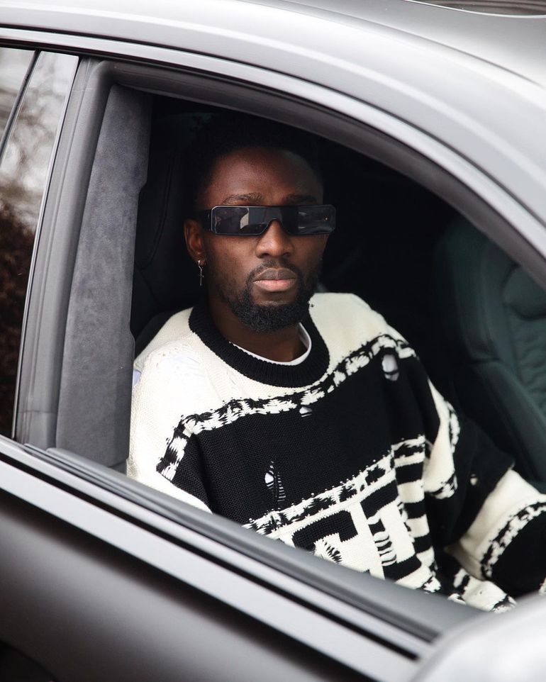 In another photo, Ndidi rocks a colour-block cable-knit jumper by Japanese streetwear brand FIVE CM.