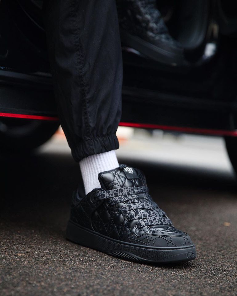 Ndidi chooses the DIOR x ERL B9S Skater Limited And Numbered Edition Black Quilted Cannage Calfskin Low Top Sneakers.