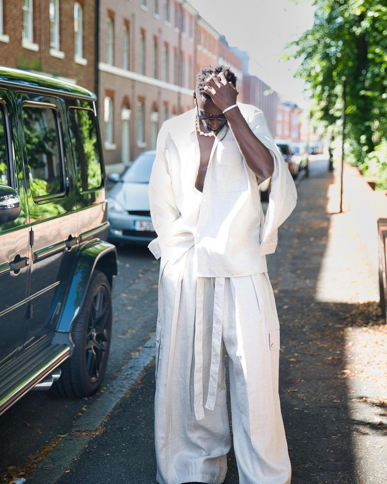Ndidi rocks a stylish piece of French linen wear in what is seemingly sown as, first a double shirt on top alongside oversize cargo pants to match.