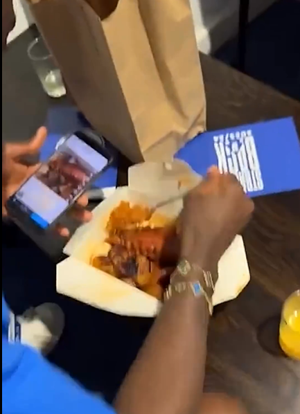 Fatawu put up a video of Ndidi eating Ghanaian jollof rice.