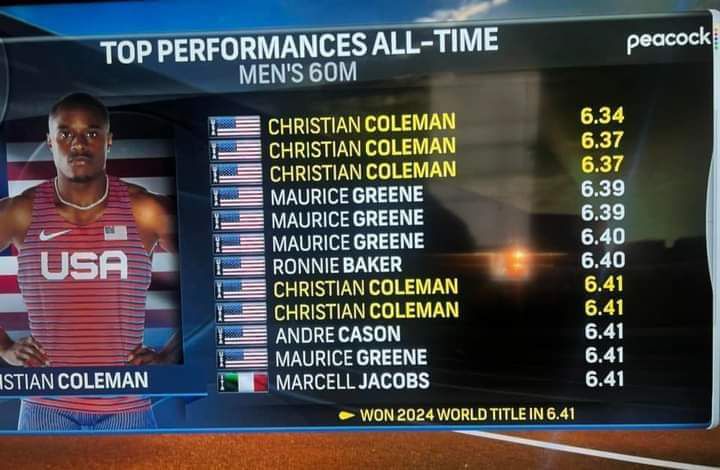 Christian Coleman is regarded as the best 60m runner in history, having clocked the World Record (WR) of 6.34s and recorded three of the top five fastest times in history.