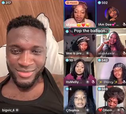 Boniface was involved in a lighthearted exchange on TikTok live with some women involving compliments, questions and money.